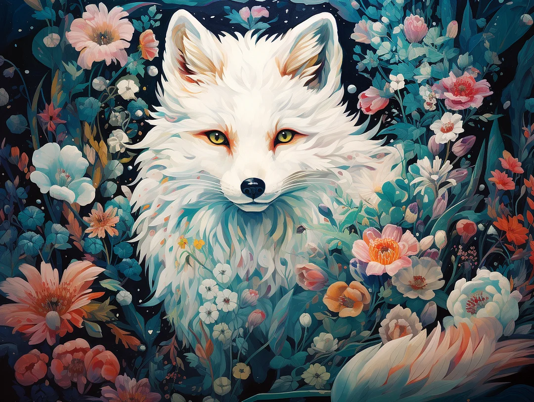 Flower Fox Full Drill with AB Detail Highlights- Full round/Square Drill Diamond Painting(velvet cloth)