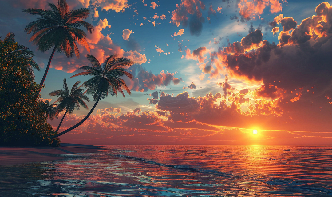 Sunset Sea Beach Coconut Tree View Partial AB Drill- Full round/Square Drill Diamond Painting(velvet cloth)